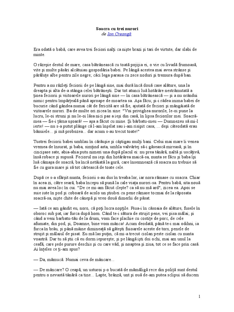 Fata Babei și Fata Moșneagului Rezumat După Ion Creangă Colectionara De Carti