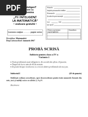 Mate Info Ro 3417 Concursul Fii Inteligent La Matematica Clasa A Iv A Pdf