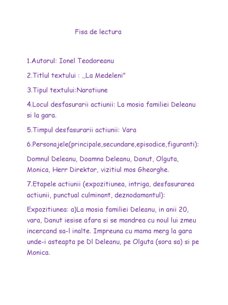 Doua Fișe De Lectură La Medeleni Volumul 1 Rezumate Cărți Citeste Cărți Online Pdf Caracterizări Referate Si Comentarii Cărți