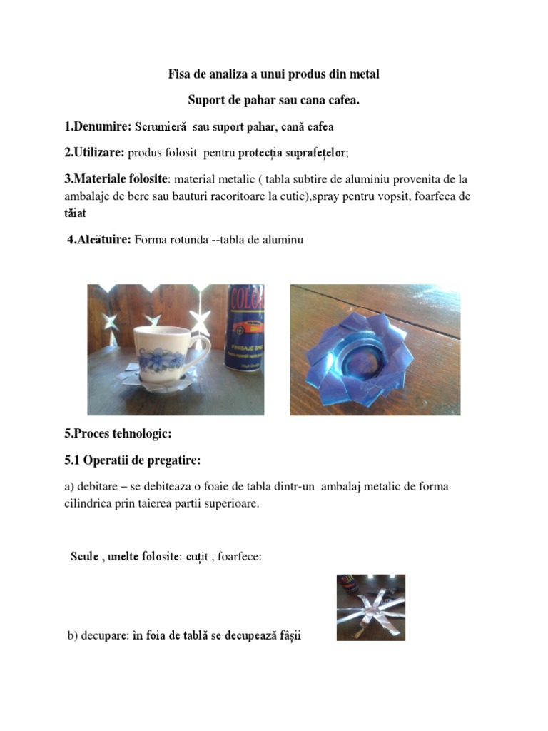 Fisa De Analiza A Unui Produs Din Metal