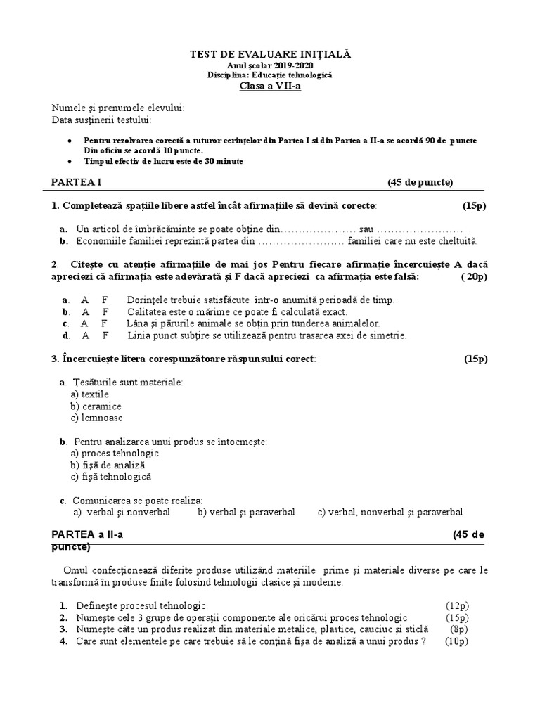 Test De Evaluare Initiala Model Edu Clasa A Viia