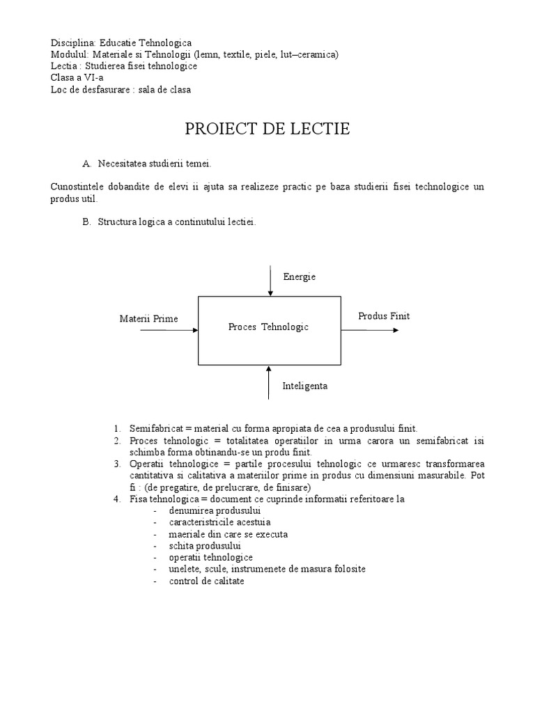 Proces Tehnologic Fisa Tehnologica