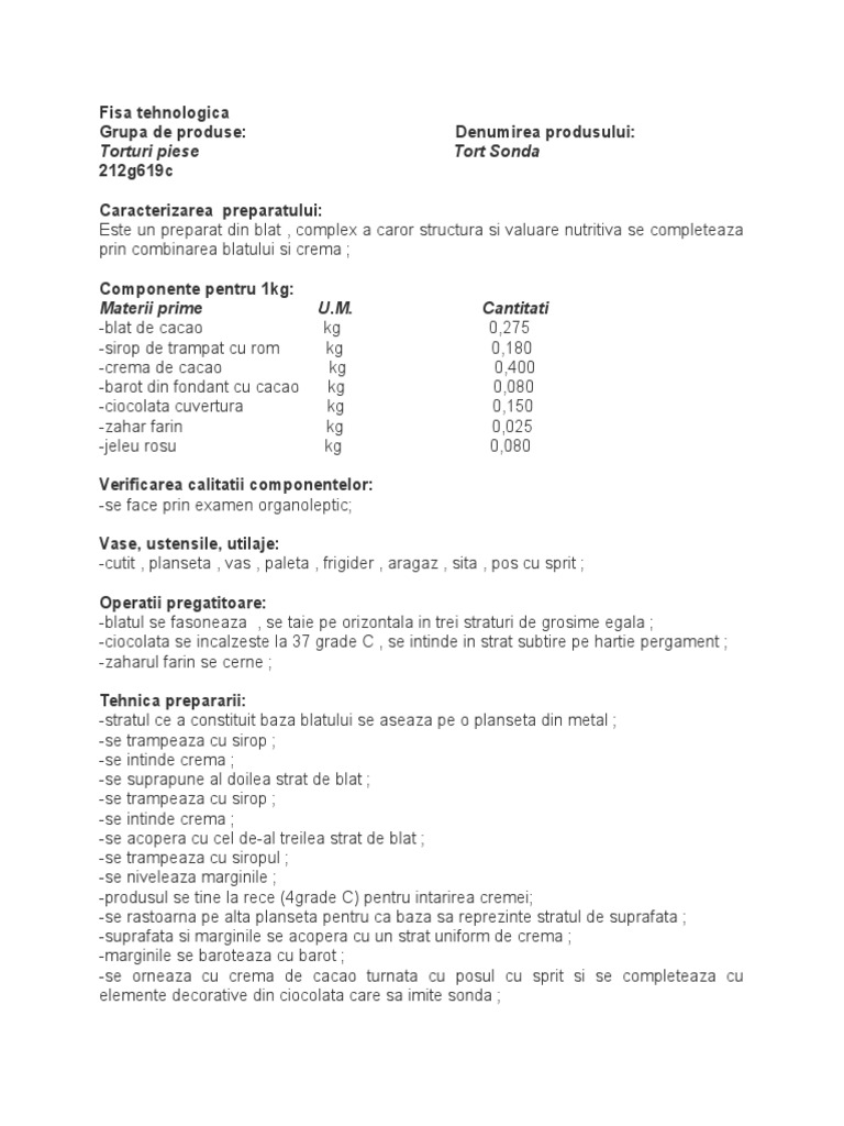 Fisa Tehnologica Tort
