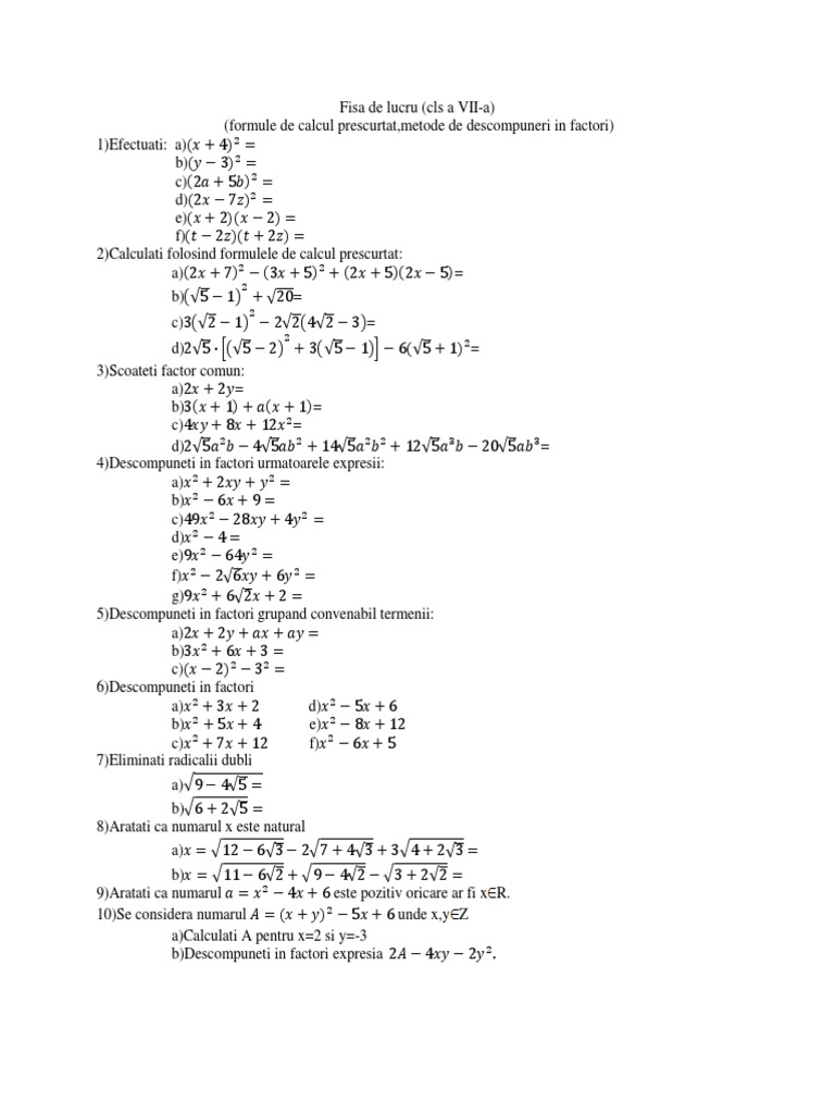 Formule De Calcul Prescurtat Descompuneri In Factori
