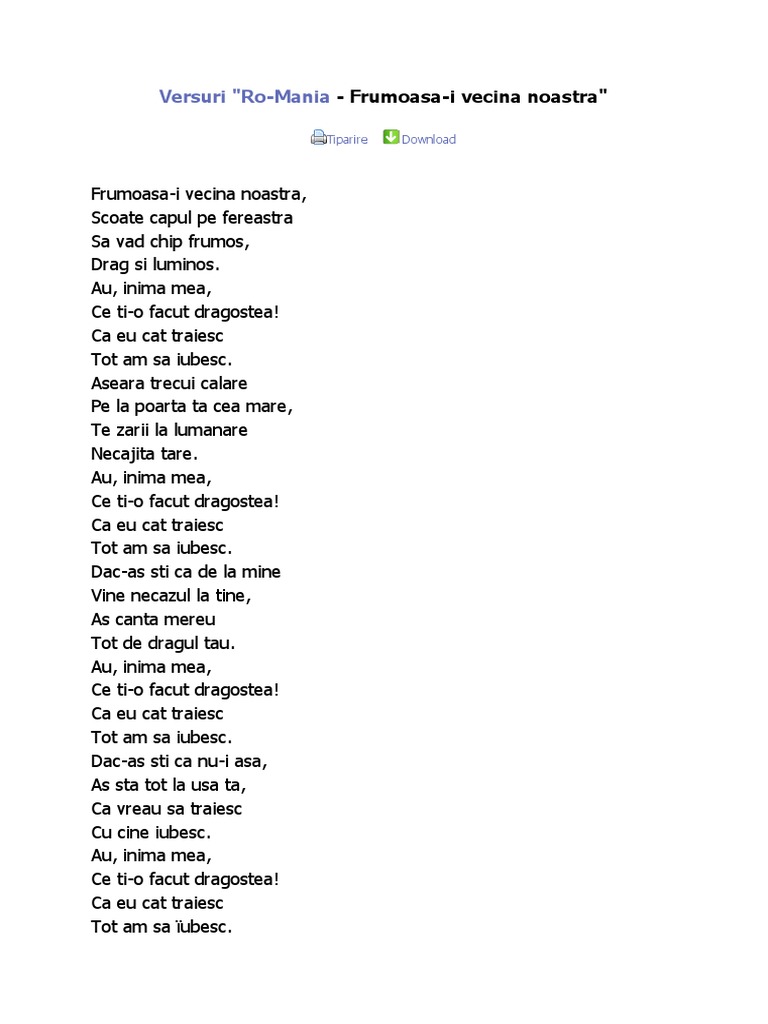 Au inima au versuri ro mania. Ma dusei sa trec la olt versuri ro mania. Versuri frumoasa i vecina noastra de ro mania. Anaisaaa hai în casă mamă că e gata pifteluţele dacă aştepţi până la ore adânci din noapte vecina din hublou va trece la programul pentru adulţi.