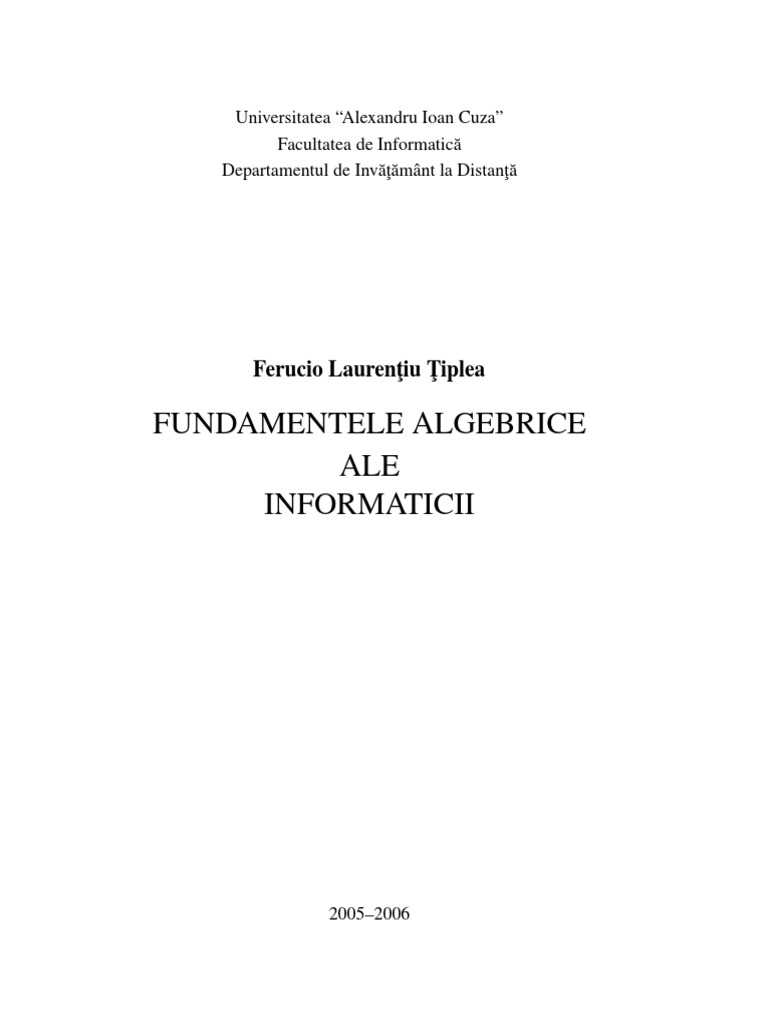 Fundamentele Algebrice Ale Informaticii Pdf