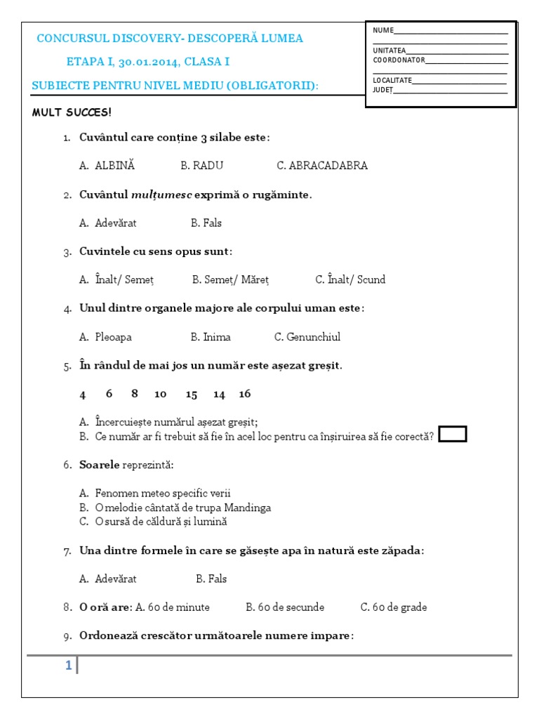 Concursul Discovery Clasa I