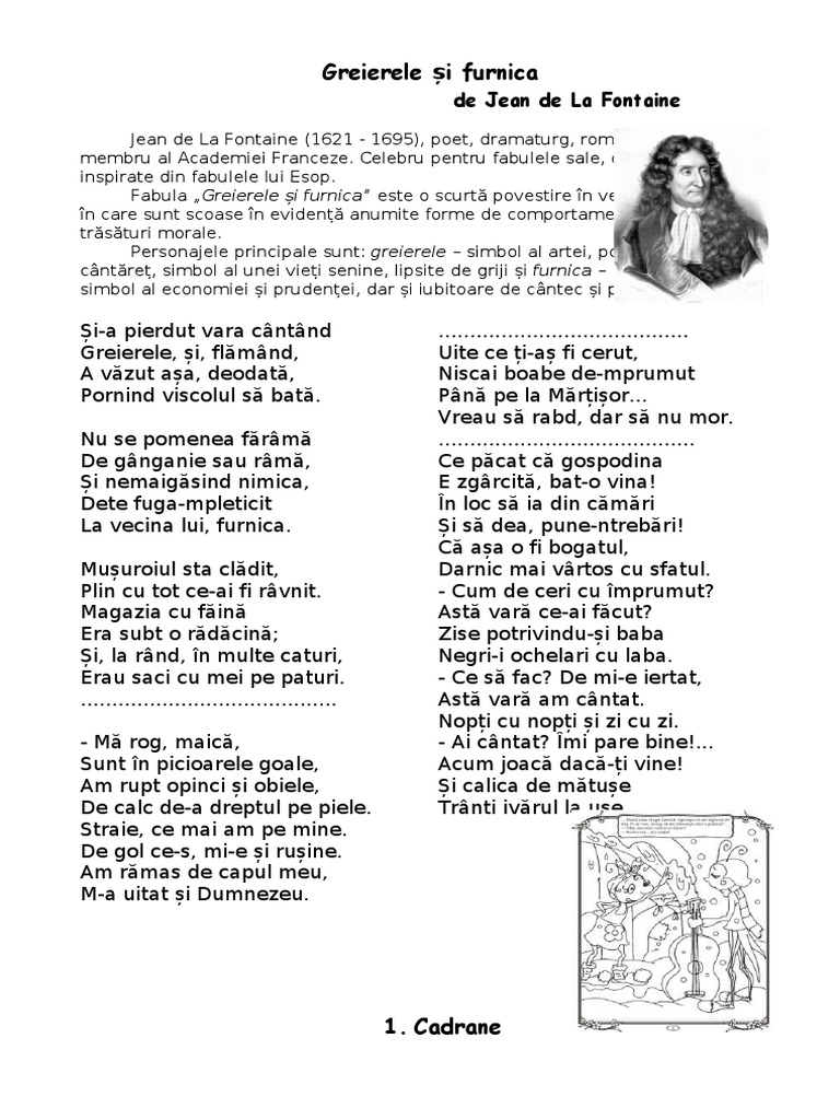 Greierele Si Furnica De Jean De La Fontaine Anideșcoală Ro