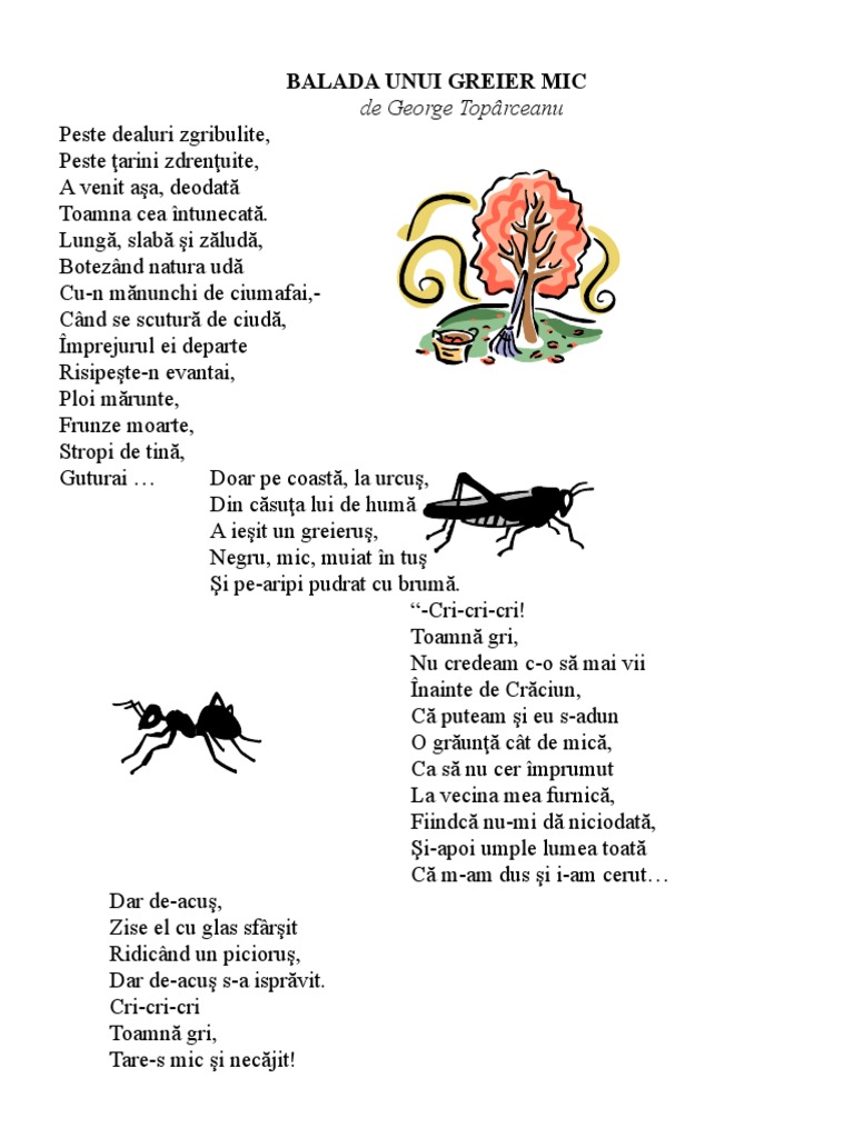 Balada Unui Greier Mic De George Topirceanu Fișe De Lucru