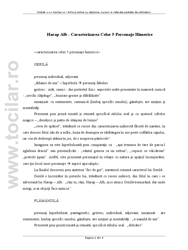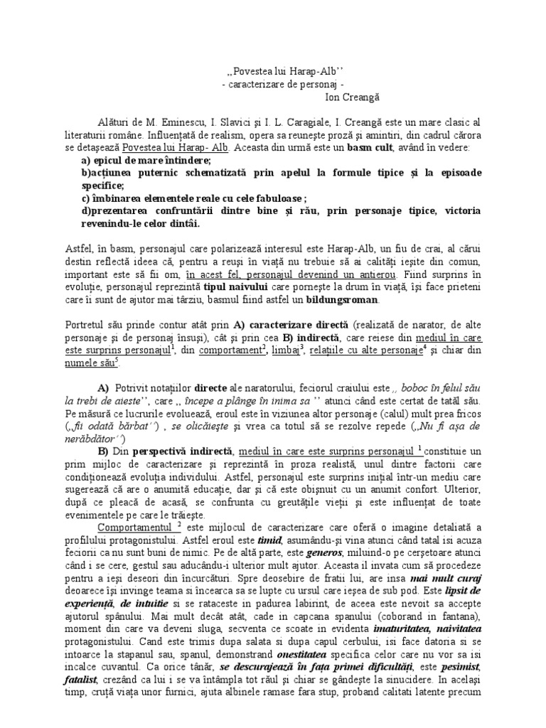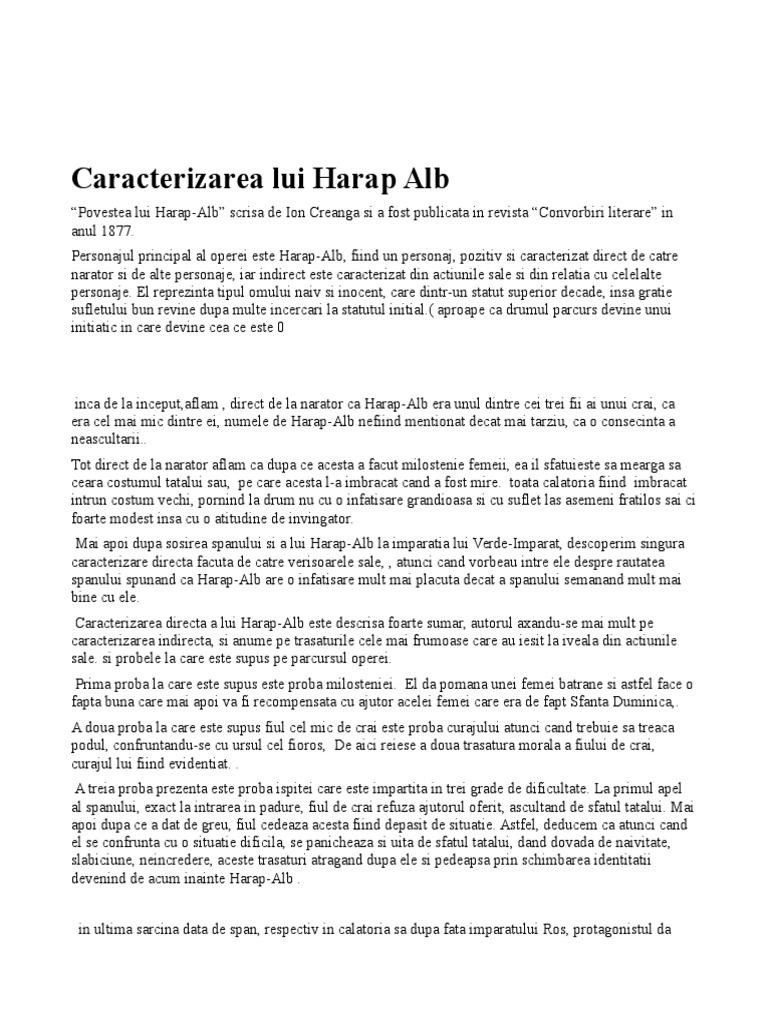 Doc Caracterizare Harap Alb Ana Maria Lepădatu Academia Edu