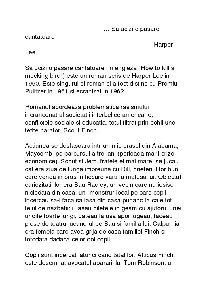 Sa Ucizi O Pasare Cantatoare Harper Lee Pdf