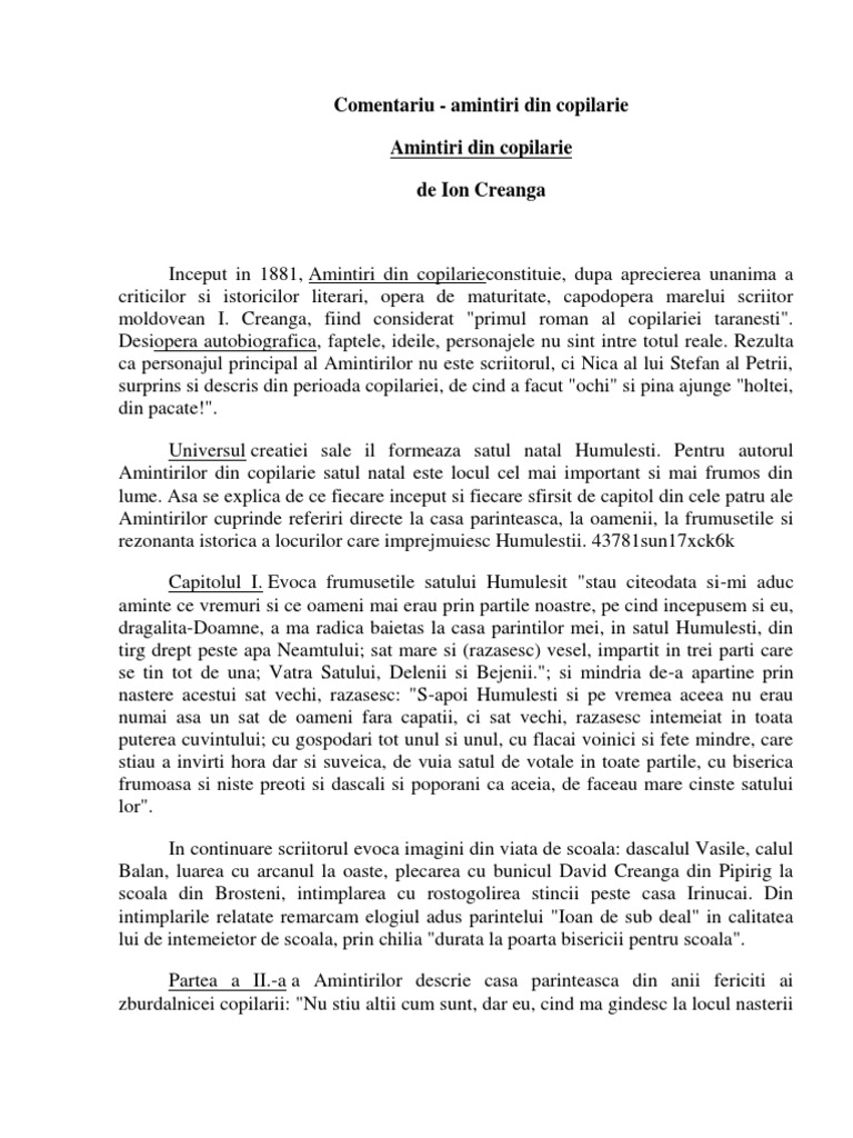 Comentariu Amintiri Din Copilarie