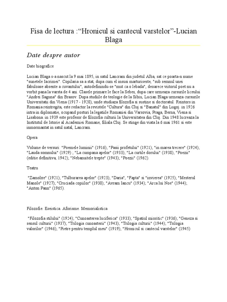 Lucian Blaga Hronicul Si Cantecul Varstelor Youtube