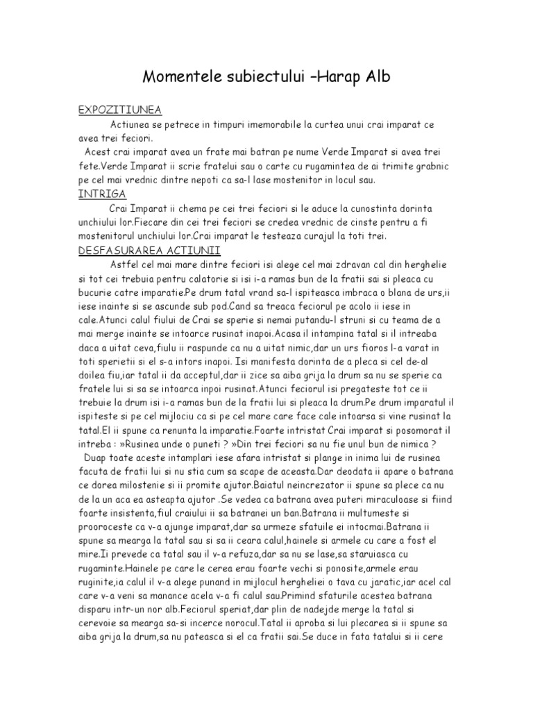 Momentele Subiectului Harap Alb Expozitiunea
