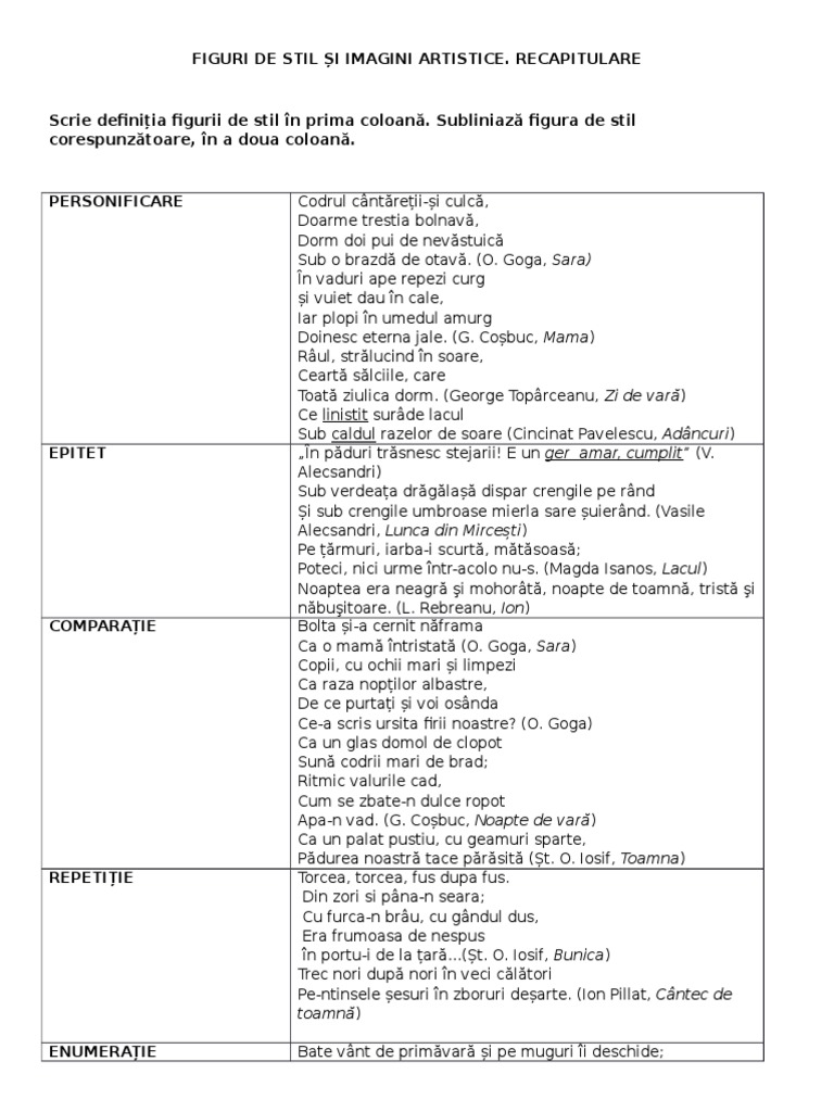 Figuri De Stil Si Imagini Artistice Urgent Brainly Ro