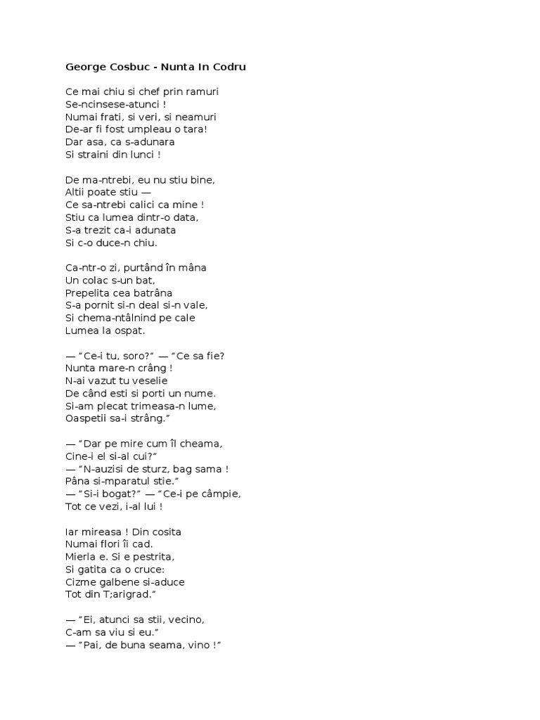 Exercitii Limbaromana Poezia In Zori De George Coșbuc