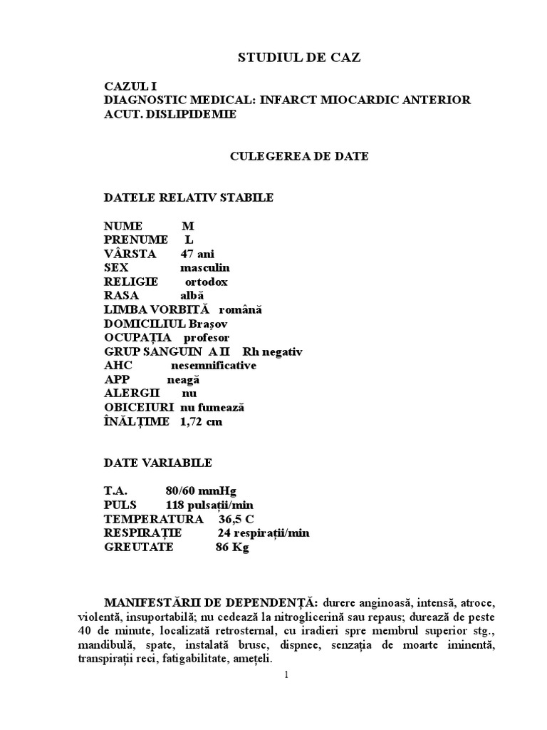 Plan De Ingrijire Al Unui Pacient Cu Infarct De Miocard Doc
