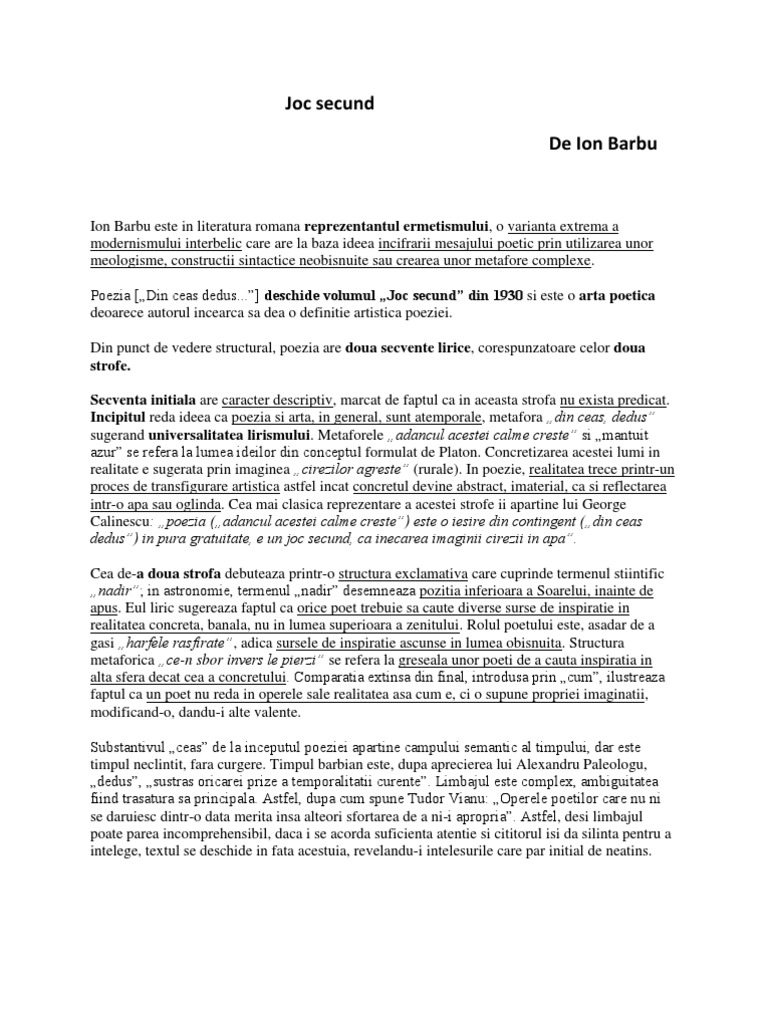 Joc Secund Ion Barbu Romanian Language And Literature Studocu