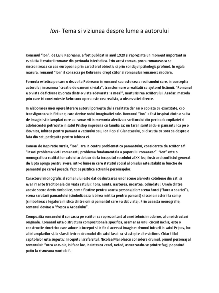 Tema Si Viziunea Despre Lume In Romanul Ion De Liviu Rebreanu 6ngeyk2yv6lv