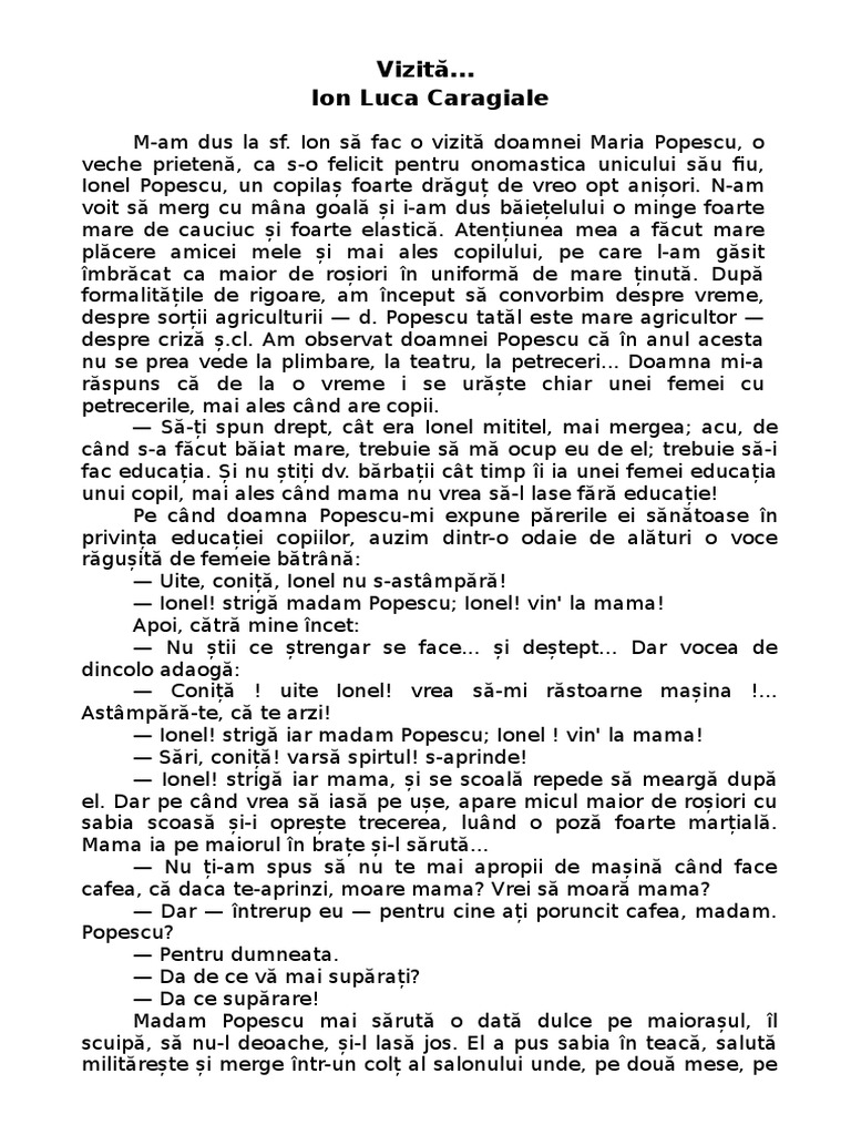 Vizita Rezumat I L Caragiale