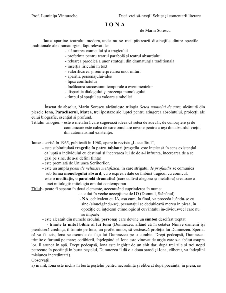 Iona De Marin Sorescu Doc