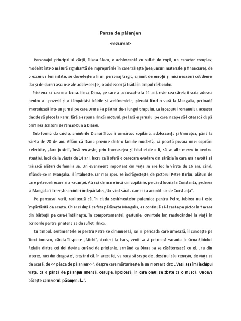 Panza De Păianjen Rezumat