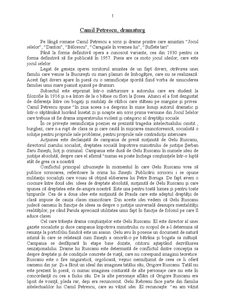Jocul Ielelor Camil Petrescu Pdf Document