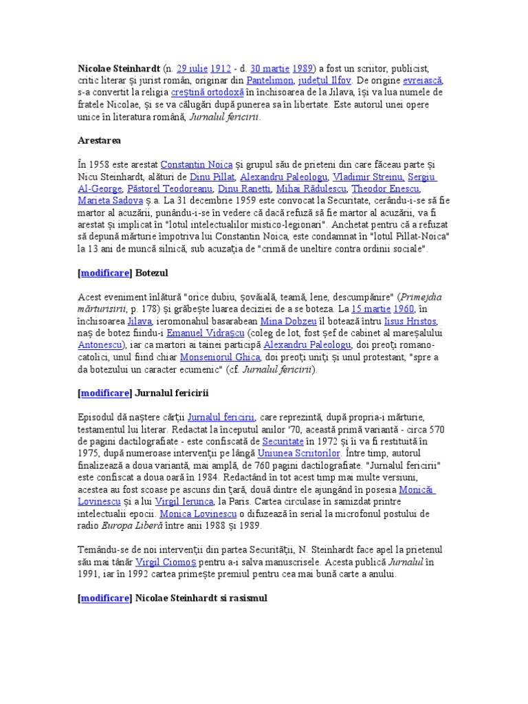 Steinhardt Nicolae Jurnalul Fericirii Pdf
