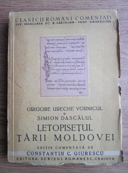 Grigore Ureche Vornicul Si Simion Dascalul Letopisetul Tarii Moldovei 1939 Okazii Ro