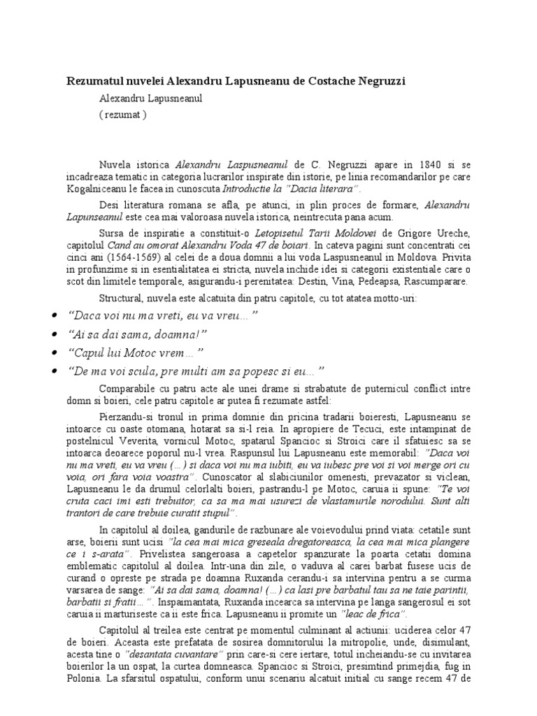 Rezumatul Nuvelei Alexandru Lapusneanu De Costache Negruzzi