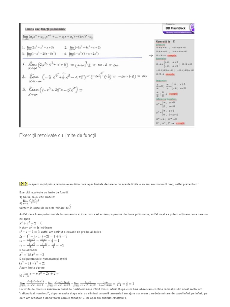 Exercitii Rezolvate Cu Limite De Functii Doc
