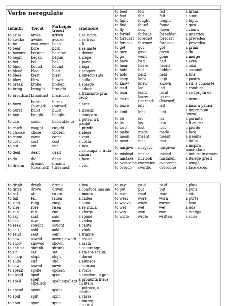 Lista De Verbe Neregulate In Engleza Cu Traducere