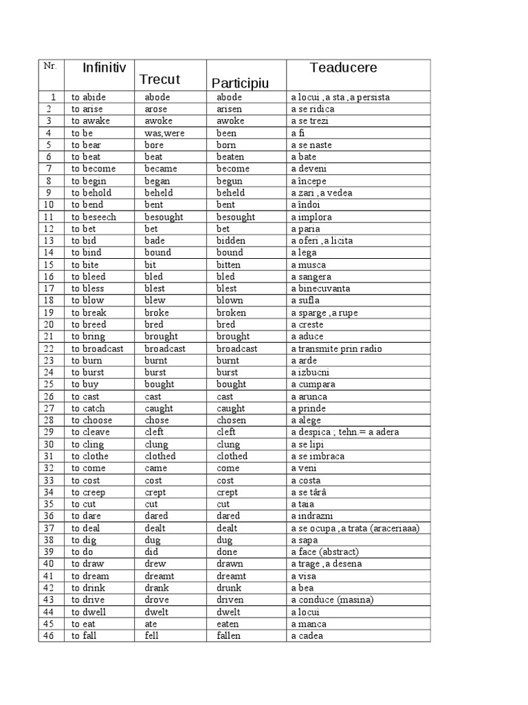 Tabel Cu Verbe Neregulate In Engleza
