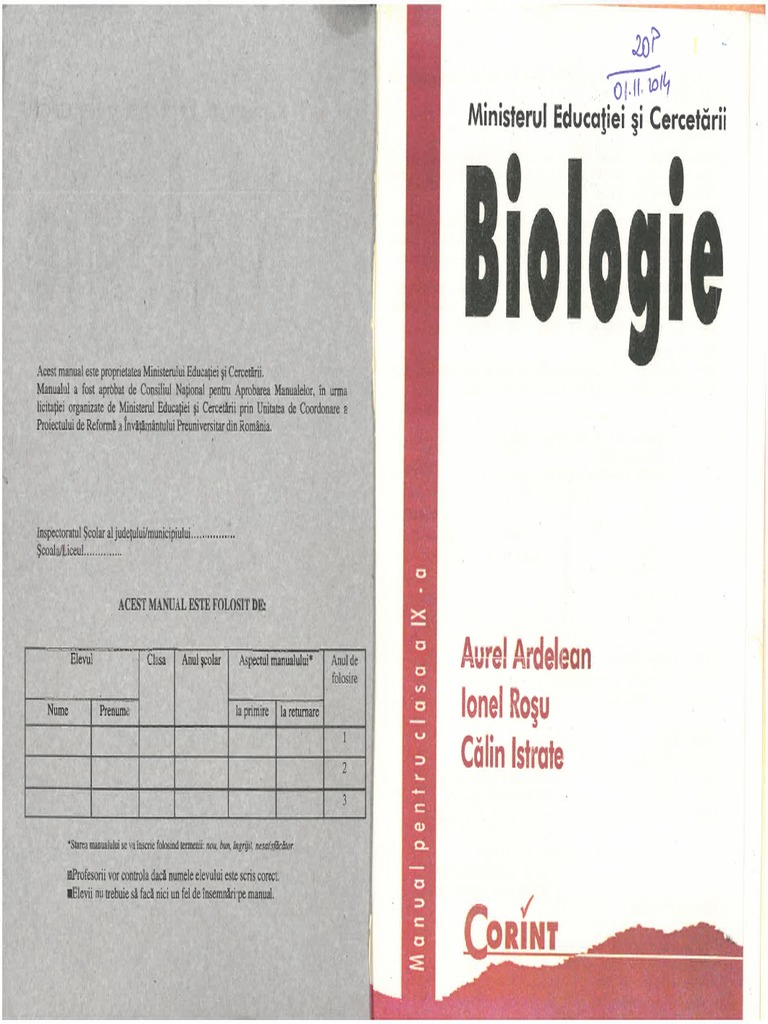 Biologie Manual Pentru Clasa A Xi A Ionel Rosu Calin Istrate Aurel Ardelean