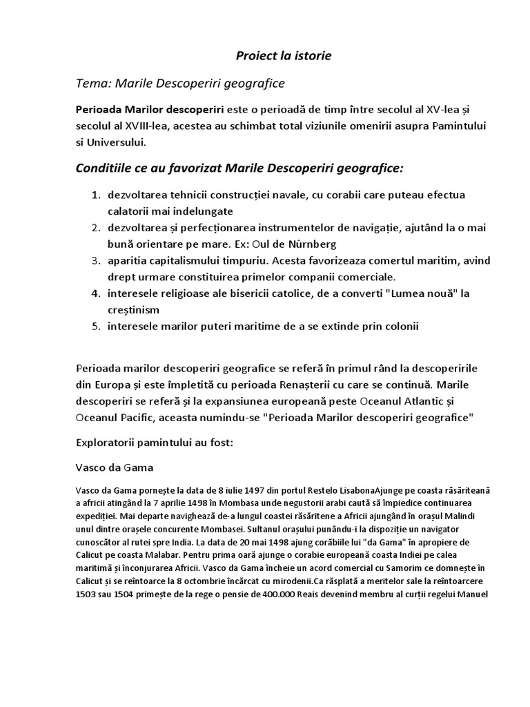 Proiect La Istorie Tema Marile Descoperiri Geografice