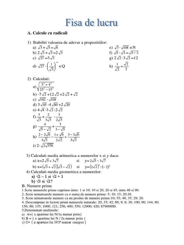 Calculati Media Geometrica A Numerelor A Modul De 2 Radical 3 3 Radical 2 B Radical 48 Radical Brainly Ro
