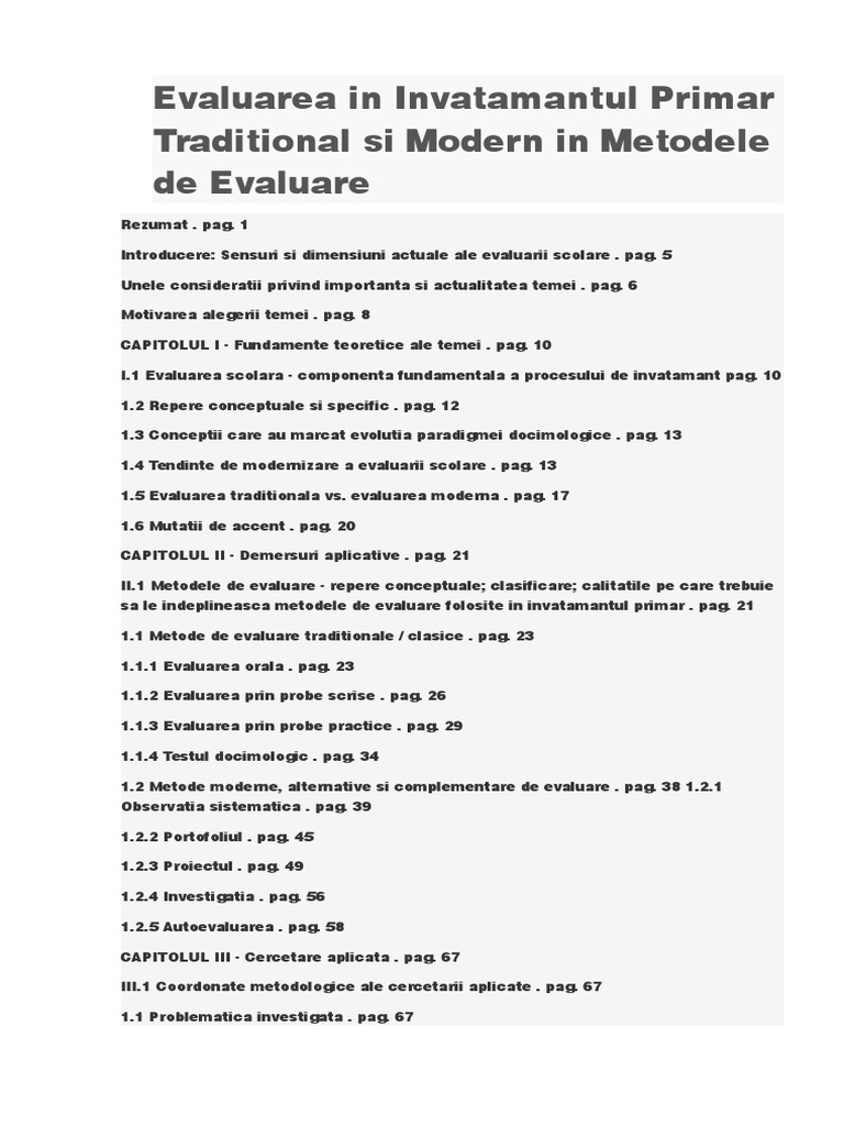 Evaluarea In Invatamantul Primar Traditional Si Modern In Metodele De Evaluare Diploma Ro
