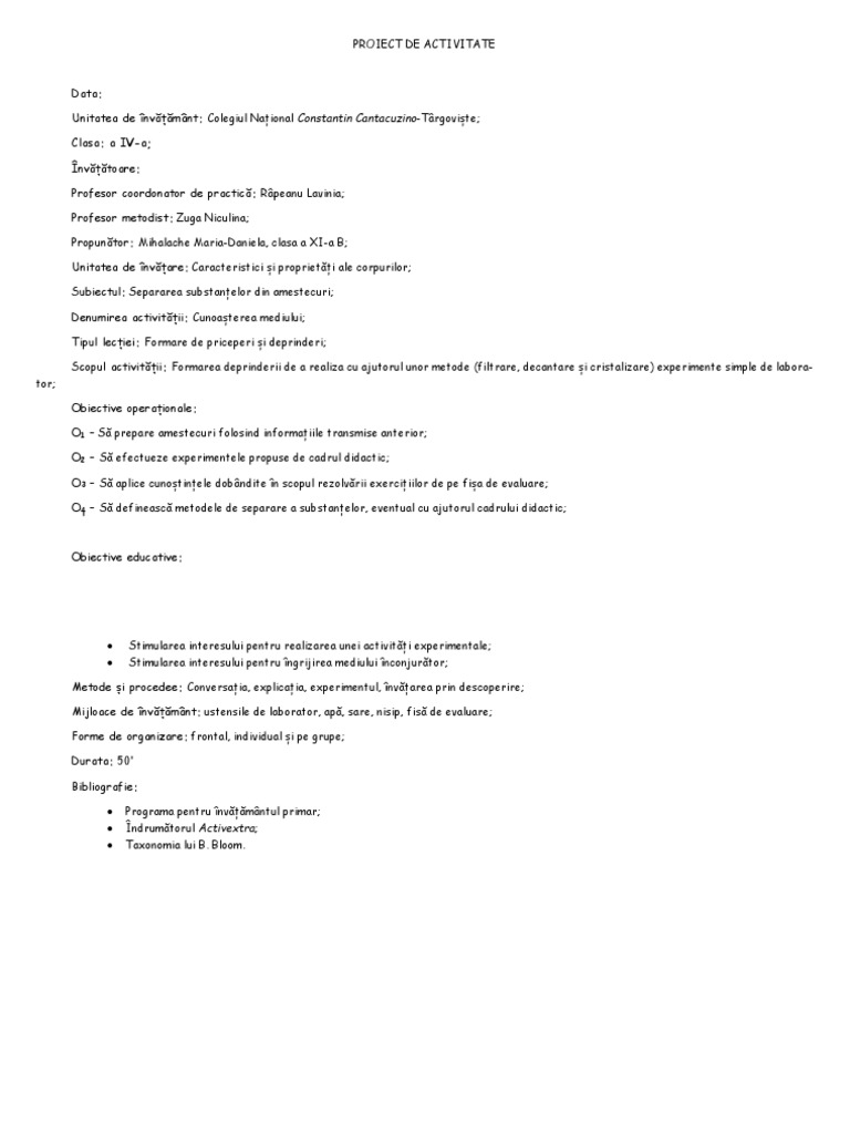 Proiect Didactic