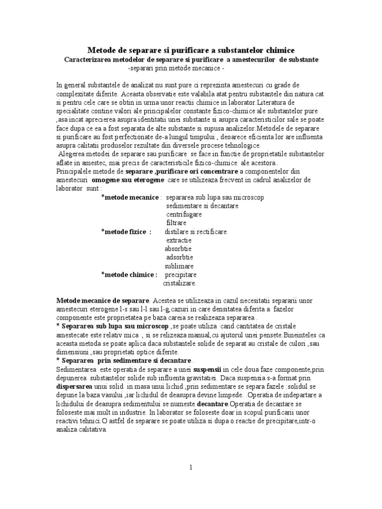 Metode De Separare Si Purificare A Substantelor Chimice