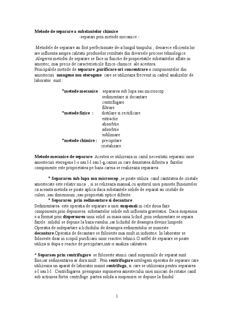 1 Metode De Separare A Amestecului De Substante