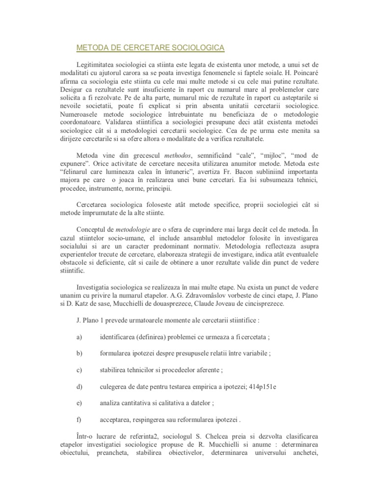 Referat Metode De Cercetare In Sociologie Sociologie 12539
