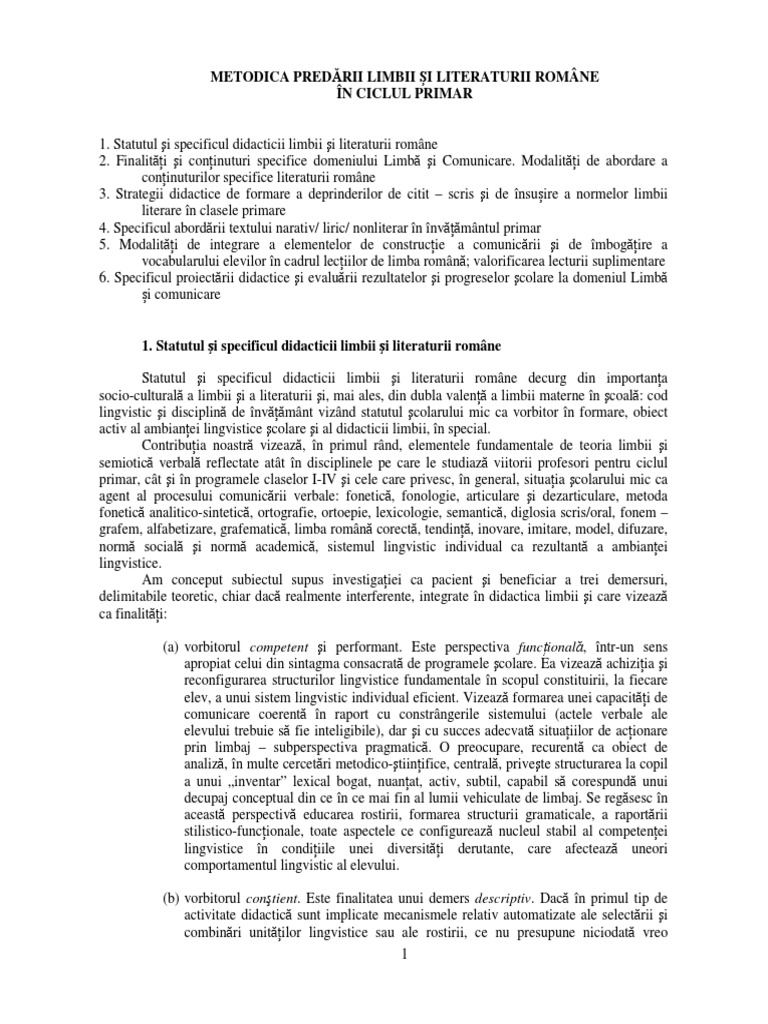 315446185 Suport Curs Metodica Predarii Limbii Si Literaturii Romane Pdf