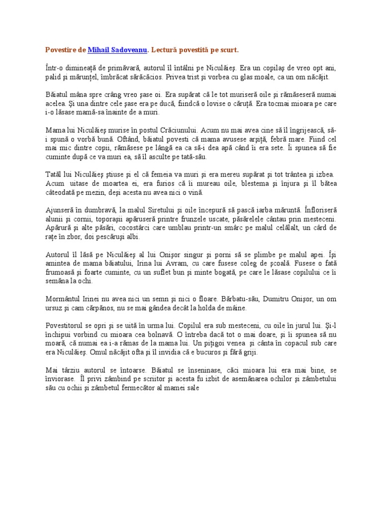 Povestire De Mihail Sadoveanu