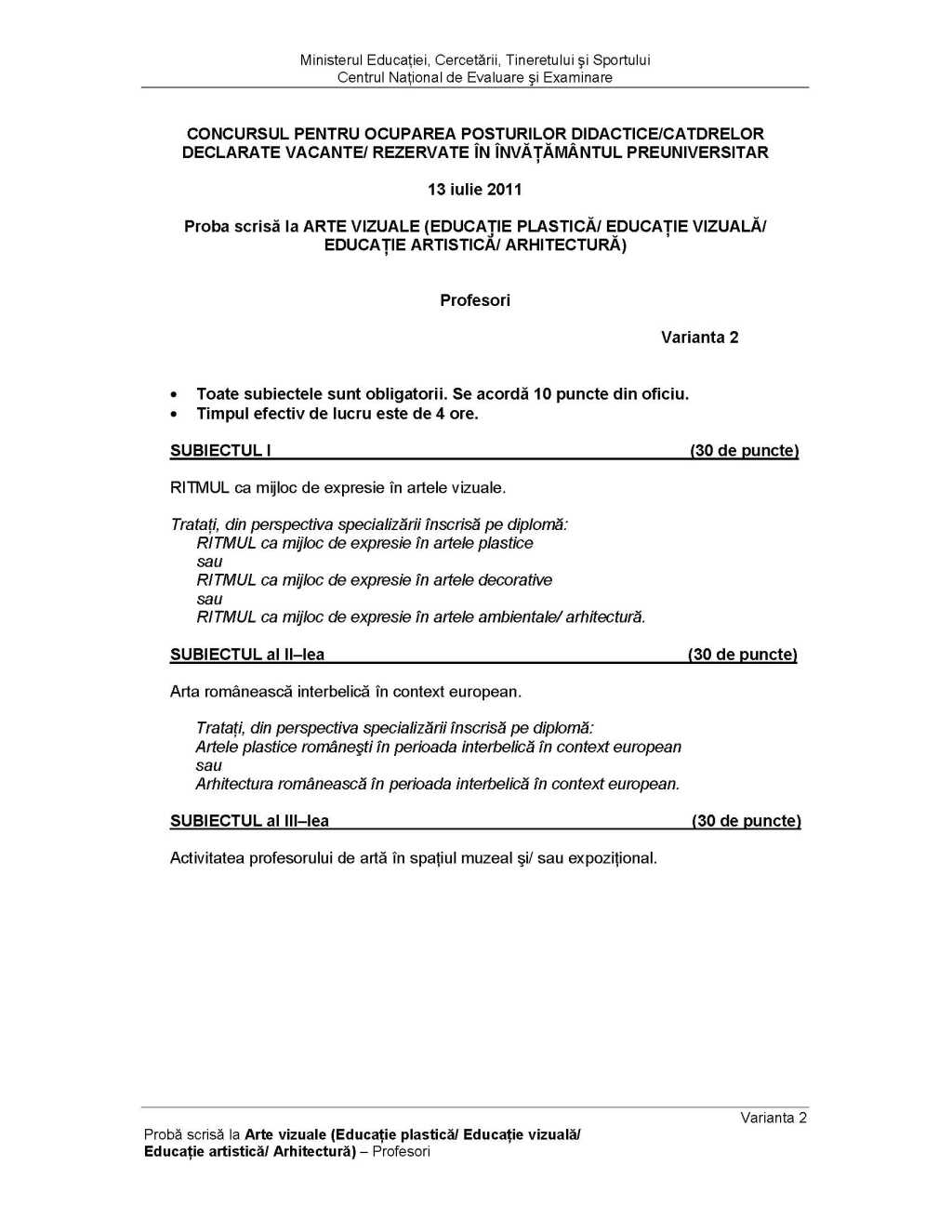 Subiecte Variante Si Rezolvari Pentru Examene Nationale 2020 Subiecte Titularizare 2011 Arte Vizuale