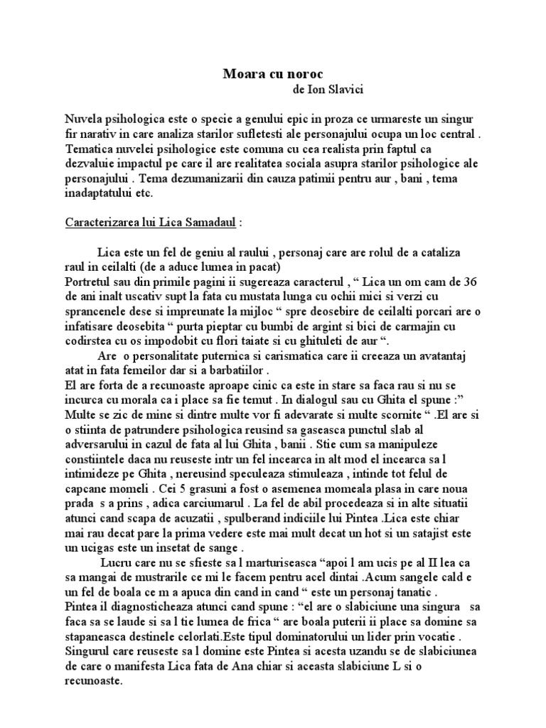 Rezumat Moara Cu Noroc Pdf