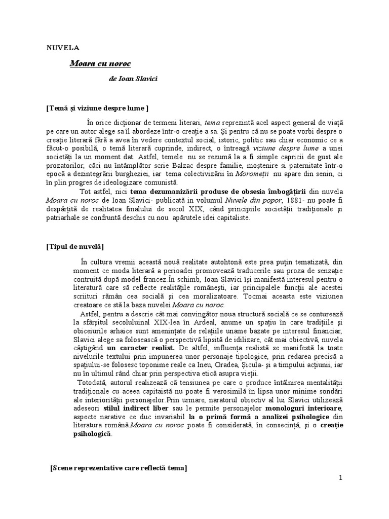Doc Caracterizare Ghita Moara Cu Noroc De Ioan Slavici Elena Grigorescu Academia Edu