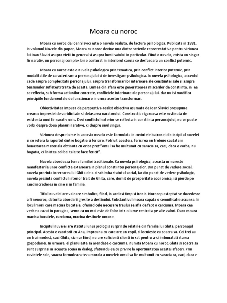 Nuvela Psihologica Moara Cu Noroc De Loan Slavici Opera Si Contextul Cultural Wattpad