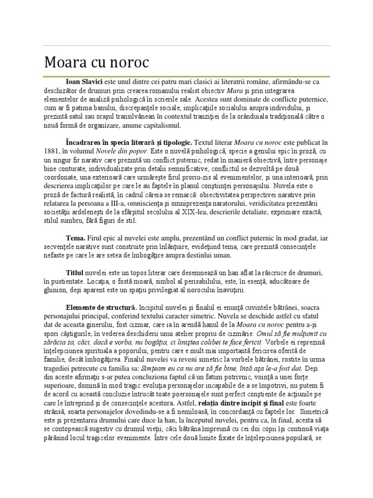 Nuvela Psihologica Moara Cu Noroc Ioan Slavici