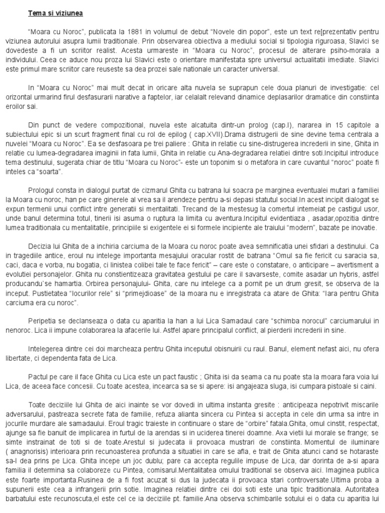 I Slavici Moara Cu Noroc Tema Si Viziunea Despre Lume