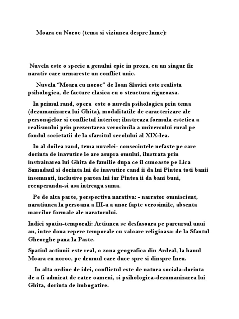 Moara Cu Noroc De Ioan Slavici Tema Si Viziune Despre Viata Wattpad